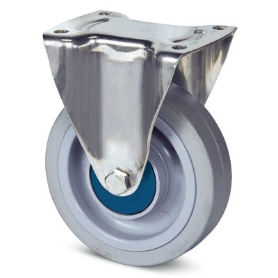 The Tente Alpha castor is suited for heavy duty applications within various hospital environments. MSP currently offers the Alpha 8478 series in a diameter of Ø100mm, Ø125mm, Ø160mm and Ø200mm in the UFC Elastech wheel tread and with plate fitting. This is a stainless steel fixed castor with no swivel functionality.