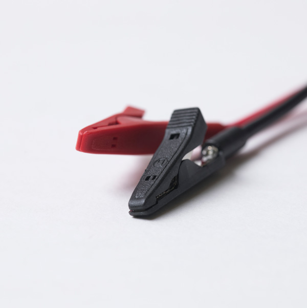 Der MSP-A-AC-00100 ist mit verschiedenen Anschlussmöglichkeiten ausgestattet: IEC-Anschluss, Krokodilklemmen und ein spezieller Stecker, passend für Arjo-Batterien – für maximale Flexibilität im Serviceeinsatz. Die Spannung wird über einen einfachen Schalter ausgewählt.