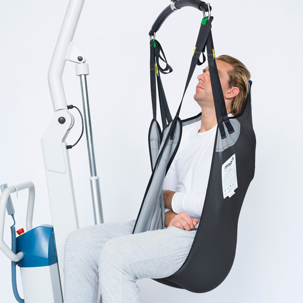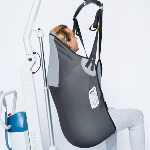 MSP presents it's highest quality Seamless sling, designed for dry transfers and which can be left around the client for the entire day.This sling is equipped with loops which can be hung up on three different heights. This provides more flexibility in how to transfer the client, in a more upright position or a more tilted position. The attachment points of the loops are colour coded for visual confirmation. It can be used on all 2- and 4-point spreader bars with hooks.
