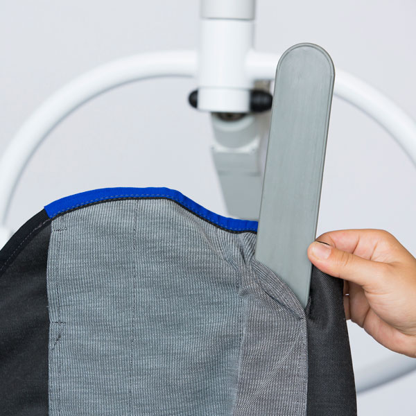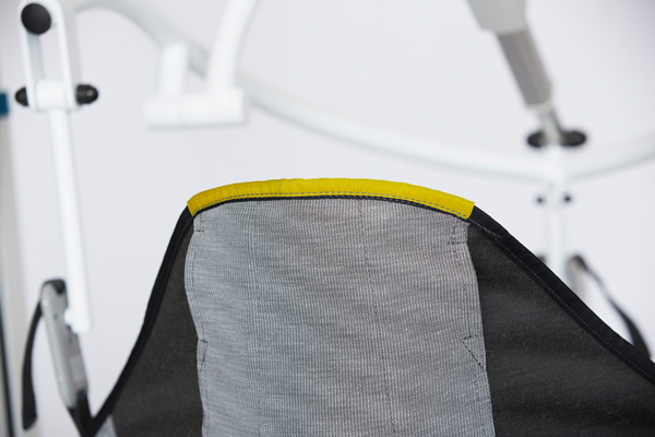 The Seamless sling is made of the highest quality polyester which has a closed structure and has bamboo fibers woven in as well. This means the sling has a certain amount of stretch. Also this sling has no stitching in the seating area to reduce irritation of the skin and comes with climate zones as well for more ventilation as the client moves. As a result this sling provides the highest level of comfort and can be used to remain around the client after the transfer for the entire day.