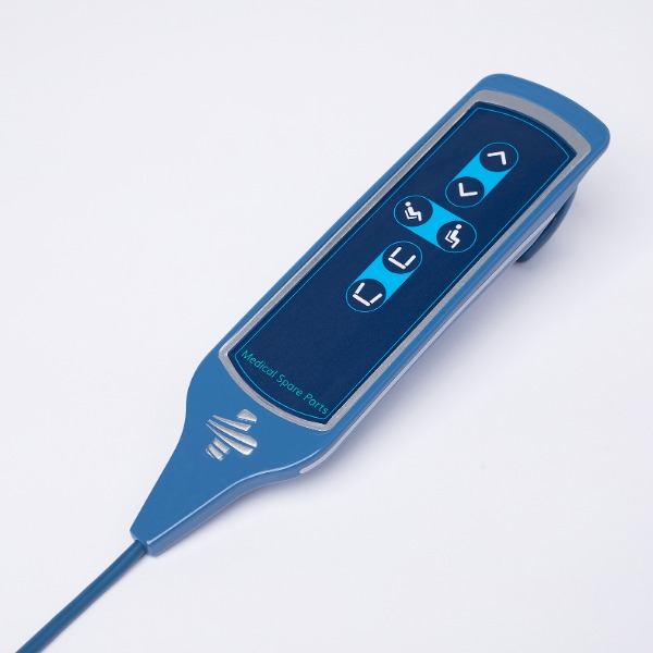 It has 6 buttons with which you can operate the high/low, tilting and legspread function and comes with a custom 90° angled connector. This ensures compatibility and no additional tools are needed to swap the handset.