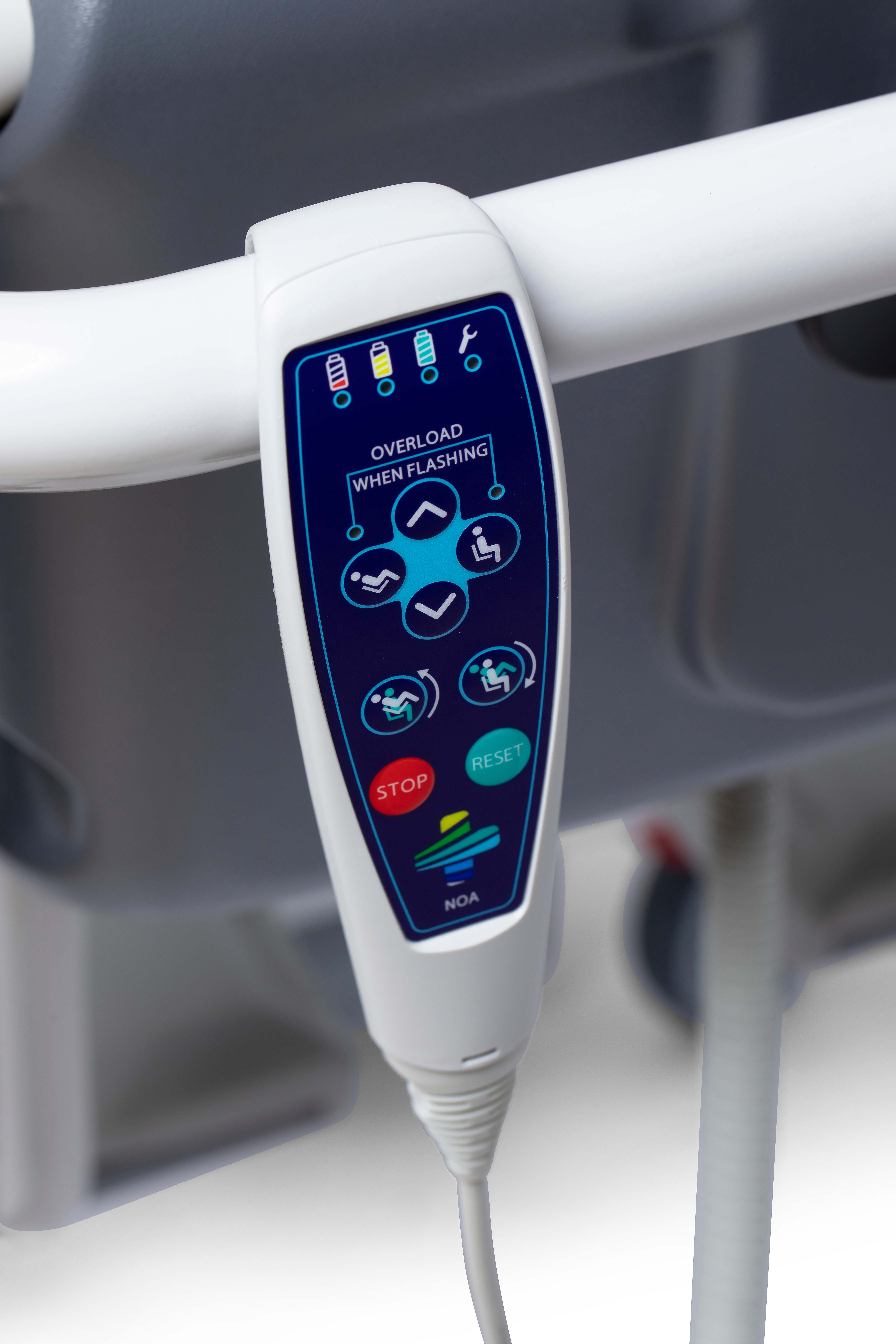 MSP proudly presents it’s electrically operated Noa shower and toilet chair. This chair hasbeen developed and refined throughout the years and is now a premium showerchair for use in nursing homes, elderly care homes, assisted living facilitiesand hospitals.
